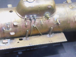 いよいよ難関の空気作用管取り付けに掛かります。ボイラーが細いので、空気管は0,2のリン青銅線を使用します。作用管支えのキャブ寄り3箇所は、イモンさんのSL048を改造後取付ました。